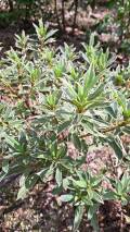 花は濃いピンク色 非常に珍しい「斑入り葉」の平戸つつじです